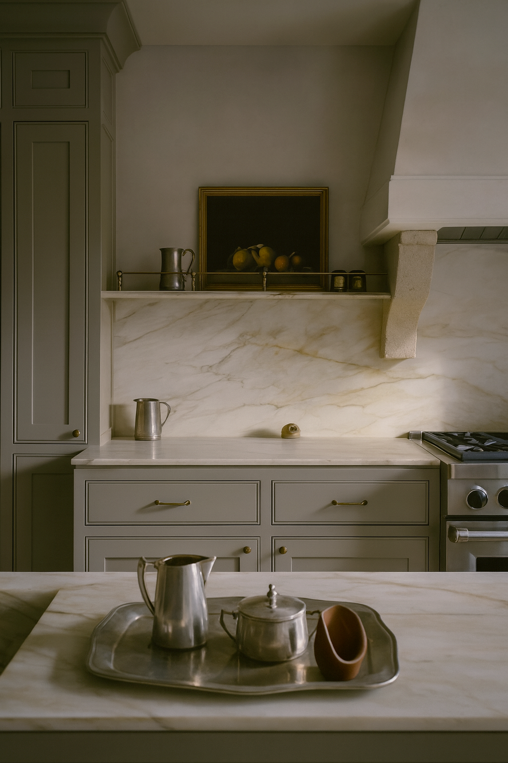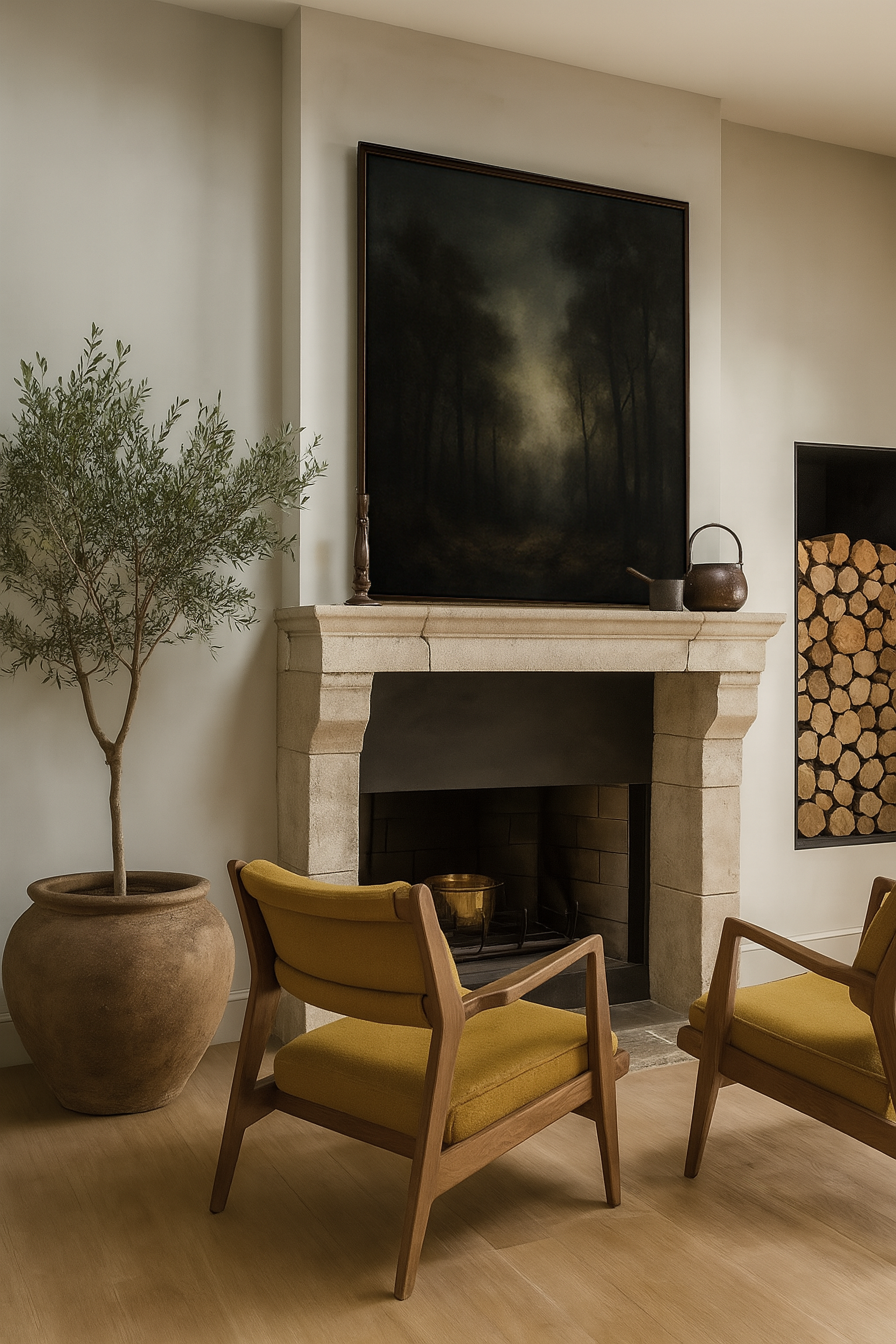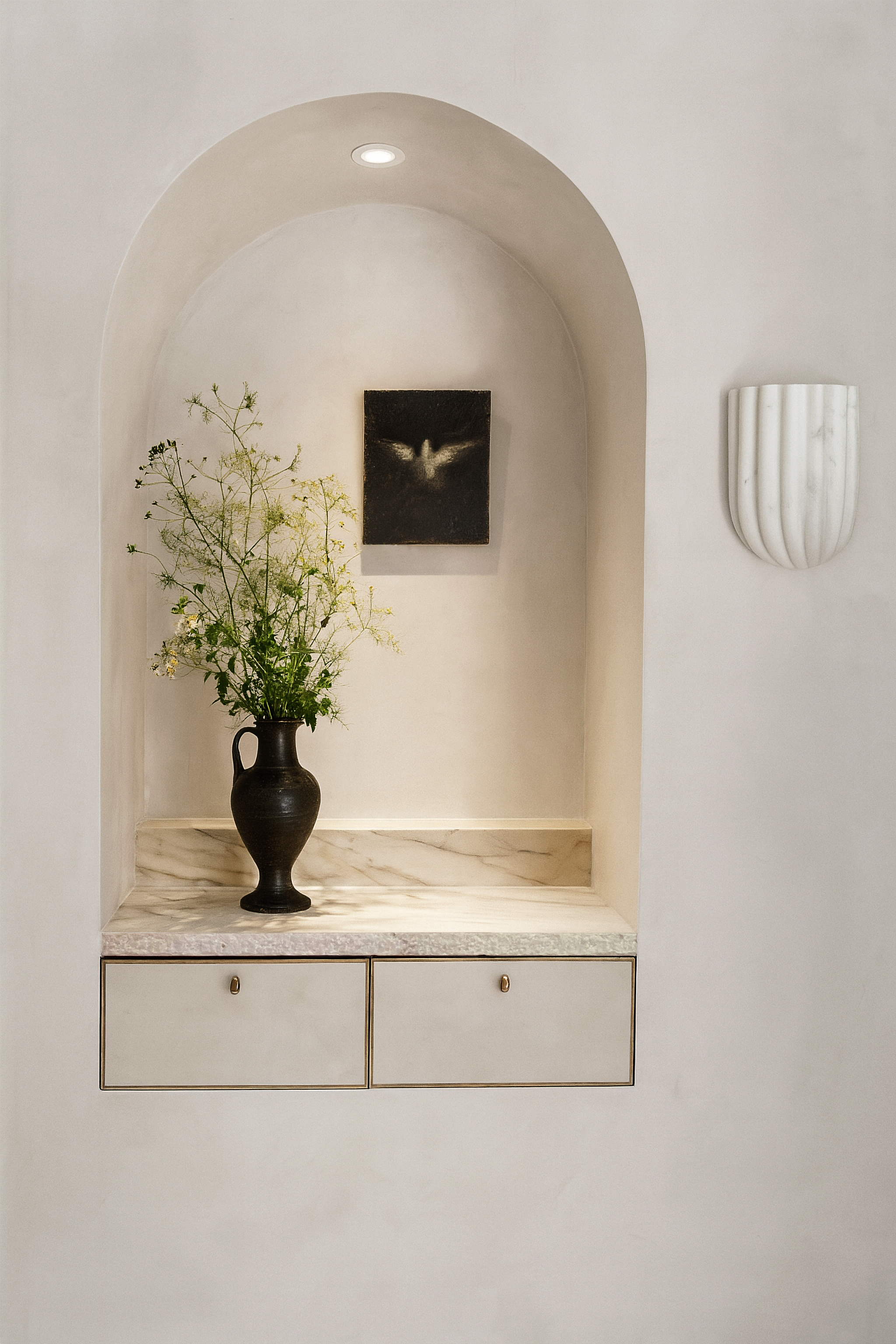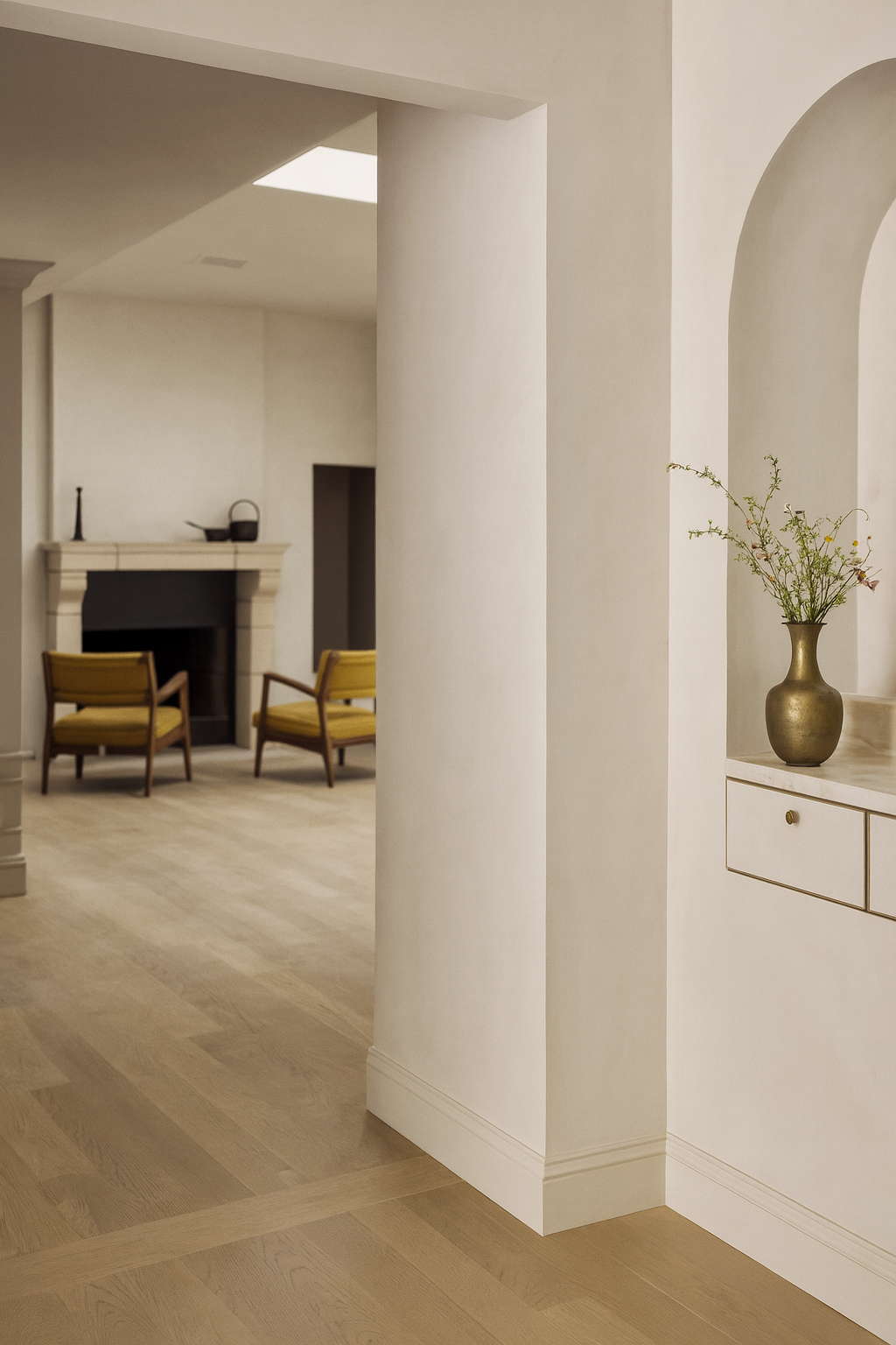 Drawing inspiration from worldly architecture and our client’s annual sojourn to Europe, the Hollywood Hills home is a time-spanning hybrid of Old-world and Modernist French architecture, filtered through the a lens of California loftiness. Our renovation of this 2300 square foot home encompasses the client’s desire for an open kitchen plan and connection to the outdoor, while making it feel personal and maintaining the historical archetypes that inspired it. The spirit of the house is grounded by the concept of a traditional kitchen and hearth - with the rich color palette, reclaimed limestone floors, stone fireplace mantle and kitchen hood- making it the hub for daily family gatherings. The classical details of the kitchen are juxtaposed with light handed articulation typical of the modernist architecture - celebrating volumes and planes defined by industrial materials such as blackened steel and burnished brass, overlaid with the earthiness of plastered walls. Classic and refined, yet earthy and welcoming, this home explores the unpredictable while staying measurably within the boundaries of comfort and functionality.