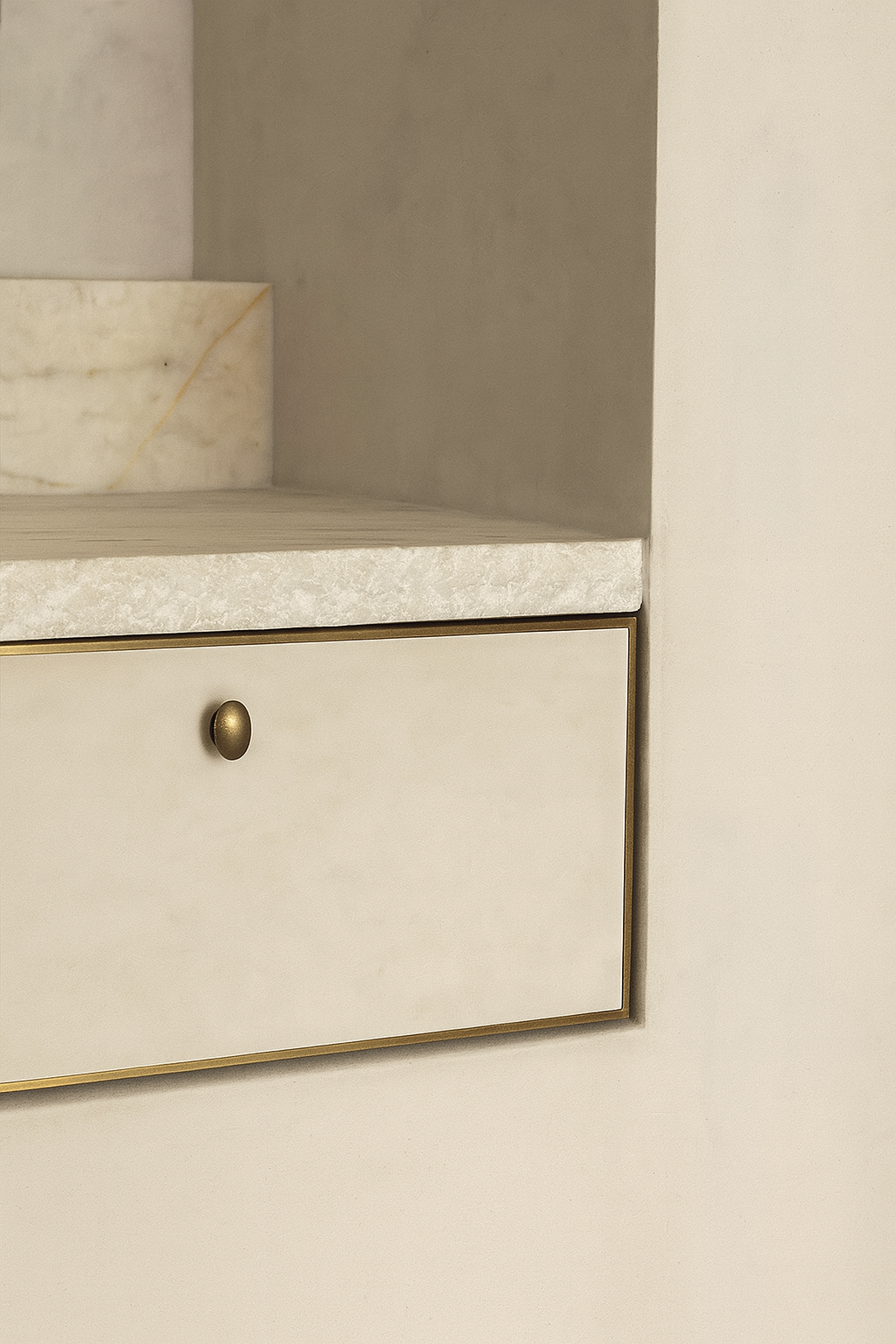 The volumetric shapes of the walls and ceilings were strategically designed to demarcate the rooms, while creating dynamic movement of shifting planes. Catching the natural light, they simultaneously create a sense of soft loftiness in the common spaces, and carve out alcoves in the private ones.